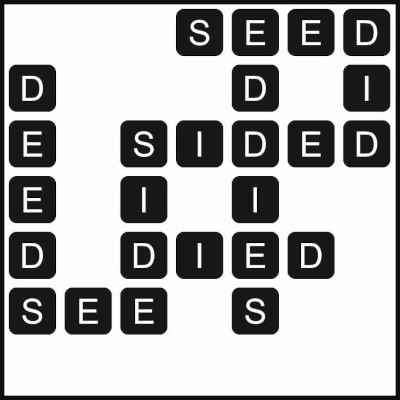 DEEDS, DID, DIED, EDDIES, SEE, SEED, SIDE, SIDED